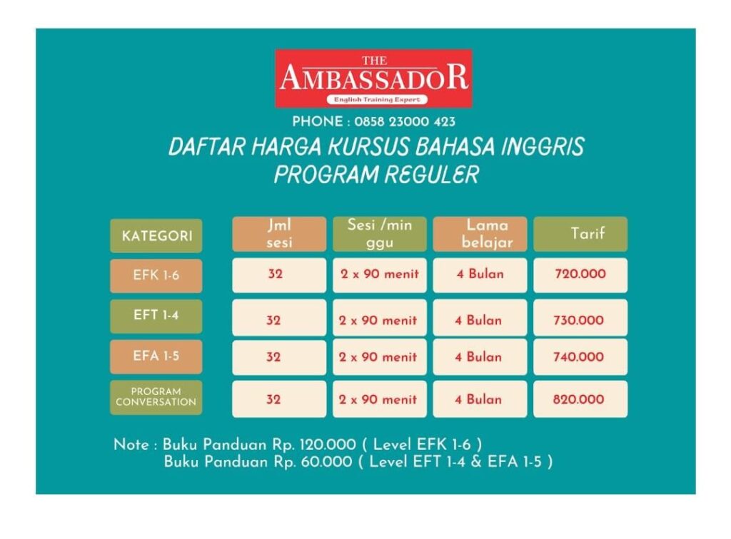 Kursus bahasa inggris dengan kategori TK,SD,SMP,SMA/MA/SMK, Perguruan tinggi dan Umum
